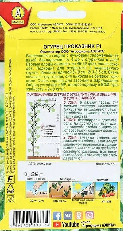 Раннеспелый гибрид с пучковым заложением завязей. Закладывает от 4 до 6 огурчиков в узле! Первые плоды снимают на 46-50 день после всходов. Подходит для открытого и защищенного грунта. Зеленцы длиной 8-10 см, диаметром 3-3,5 см. Очень сочные и хрустящие, они никогда не бывают горькими. Очень хороши для засолки и маринования. Гибрид устойчив к МР, кладоспориозу и ВОМ. Урожайность – 9-10 кг/кв. м.