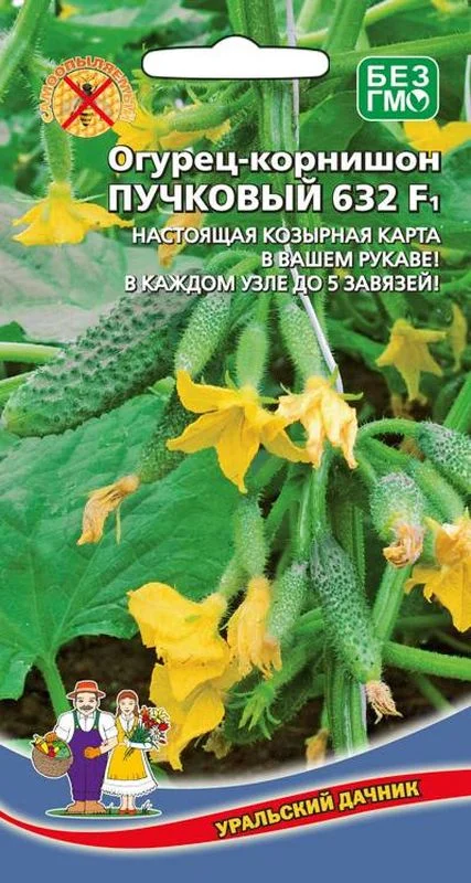 Скороспелый партенокарпический пучковый корнишонный гибрид женского типа цветения для открытого и защищенного грунта. Обладает интенсивной, дружной отдачей урожая. Растения сильнорослые, ветвление ниже среднего или среднее. Зеленцы интенсивно-зеленой окраски, крупнобугорчатые, белошипые, длиной 10-12 см,с часто-средним расположением бугорков. Засолочные и вкусовые качества высокие. В узлах формируется от 2-3 до 4-5 завязей.