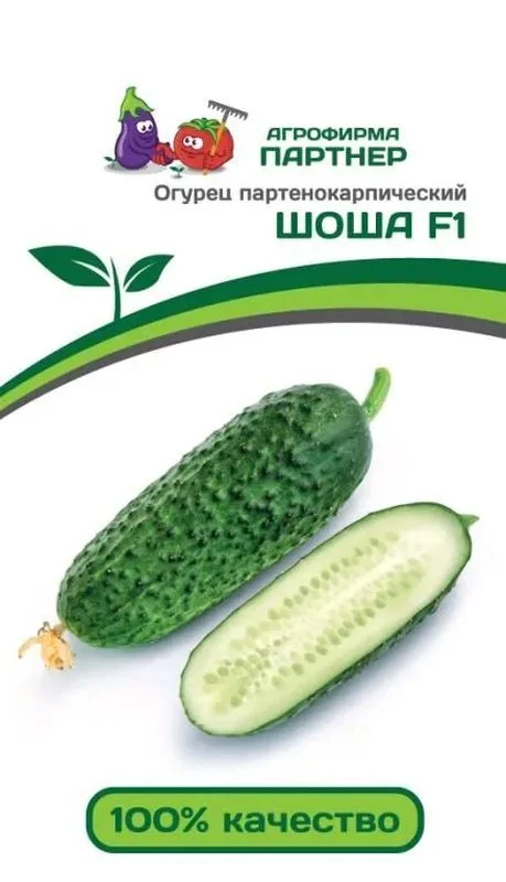 Гибрид  раннеспелый, партенокарпический, женского типа цветения. От всходов до начала плодоношения 39-43 дня. В узле формируется до 3 завязей. Зеленцы цилиндрической формы, темно-зелёные, крупнобугорчатые, короткие со сложным белым опушением. Длина зеленца 9-11см, диаметром 3-3,5см, массой 50-80 г. Гибрид предназначен для потребления в свежем виде и консервирования. Устойчив к основным заболеваниям: обыкновенной огуречной мозаике, настоящей мучнистой росе, мишеневидной пятнистости листьев и вирусу пожелтения жилок огурца. Рекомендуется выращивать в защищенном и открытом грунте. Плотность посадки 4-5 растений/м2.Урожайность в открытом грунте до 12 кг/м2, в защищенном свыше 18кг/м2.