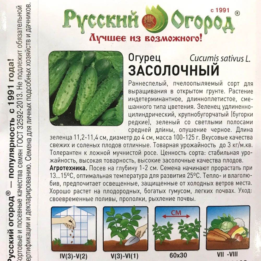 Чтобы долго не выбирать сорт, пригодный для бочкового и бытового соления, рекомендуем смело приобретать проверенный огурец Засолочный. Купить семена этой популярной гурманской разновидности всего от 15 рублей вы можете в нашем каталоге. Куст компактный, при этом высокорослый, плетистый. Плоды многочисленные, короткие, не более 12-13 см в длину и весом около 100-130 г. Как и требуют правила традиционных русских методов засолки, зеленцы имеют многочисленные пупырышки и желтый бочок/полоски. Отменный вкус! Пригодны и для потребления в свежем виде. Рекомендуется выращивать на открытой гряде, чтобы не было проблем с опылением, для которого в данном случае нужны пчелы.