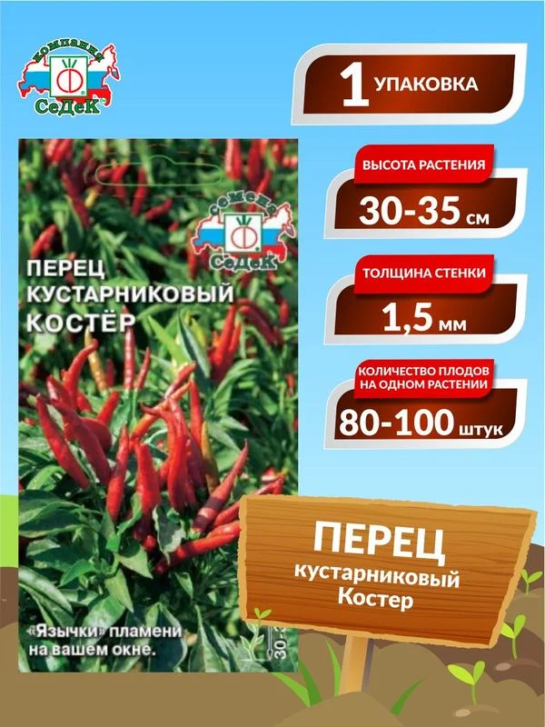 Раннеспелый сорт для выращивания в открытом грунте, под пленочными укрытиями, на балконах, лоджиях и в комнатных условиях. Растение прямостоячее, высотой 30-35 см, с пучковым расположением плодов, плотно прижатыми друг к другу. Листва темно-зеленого цвета. Плоды направлены вверх, узко-конусовидные, по мере созревания изменяют окраску: от белой, желтой и до красной. Толщина стенки 1,5 мм. Вкус острый. Ценность сорта: теневыносливость, высокая ароматичность, декоративность. На одном растении формируется 80-100 плодов. Рекомендуется для употребления в свежем виде (для любителей острого вкуса), приготовления различных приправ, для консервации.