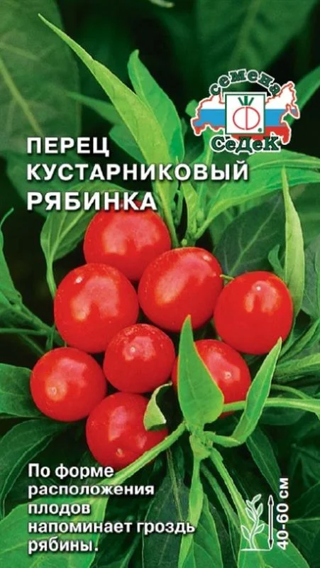 Среднеспелый (130-135 дней) сорт для выращивания в открытом грунте, под пленочными укрытиями, на балконах, лоджиях и в комнатных условиях. Растение кустовое, компактное, высотой 40-60 см. Лист мелкий, темно-зеленый. Плоды направлены вверх, собраны в кисти, округлые, гладкие, красные, массой 2-3,5 г, толщина стенки 1-2 мм. Вкус острый с сильным ароматом. Ценность сорта: высокая декоративность, по форме расположения плодов напоминает грозди рябины, способность развиваться и формировать урожай в условиях пониженной освещенности, продолжительный период плодоношения. Рекомендуется для оформления дизайнерских композиций. В пищу употребляется в свежем виде, используется для сушки, консервирования, различных кулинарных переработок.