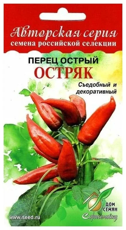 Раннеспелый (90-100 дней от полных всходов до начала плодоношения) сорт для выращивания под пленочными укрытиями, в вазонах и горшках на участке и в помещениях. Растение низкорослое, высотой 0,4-0,5 м, штамбовое. Плоды конусовидные, длиной 7-8 см, диаметром 1,5-2,0 см, растущие вверх. Окраска плодов в технической спелости светло-зеленая, в биологической темно-красная. Цвет плавно меняется по мере созревания. Вкус острый. Сорт отличается декоративностью, устойчивостью к перепадам температур. Острый перец придает неповторимый вкус разным блюдам. Семена фирмы «Агросемтомс» приспособлены для выращивания в неблагоприятных погодных условиях.Посев: во 2-3-й декаде февраля на рассаду на глубину 1-1,5 см  во влажную почву.  Оптимальная температура почвы для быстрого прорастания семян ( от 7 до 14 дней) - 25 С. При температуре почвы ниже 18 С семена всходят 3-4 недели. Рассаду высаживают в теплицу после окончания весенних заморозков по 5-6 раст/м2. Острый перец должен расти отдельно во избежание переопыления.Уход: в период цветения и завязывания плодов отзывчив на подкормки фосфорно-калийными удобрениями. По мере разрастания растения можно  подвязывать.Сбор урожая: плоды можно снимать в стадии технической спелости.