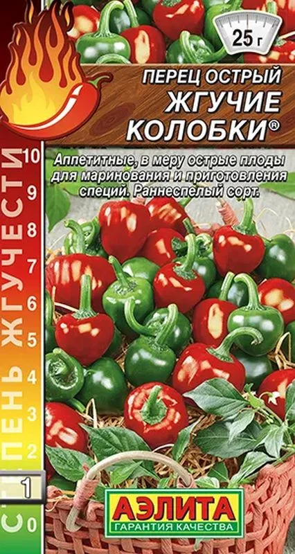 Ароматный, с ноткой сладости сорт острого перца для выращивания в открытом грунте и под пленочными укрытиями. Растения полураскидистые, компактные, высотой до 1,5 м в условиях теплицы. Первый урожай созревает спустя 110-120 дней после появления всходов. Плоды гладкие, глянцевые, массой 20-25 г, толщина стенки 2-3 мм. По мере созревания приобретают алый цвет. Урожайность сорта в защищенном грунте – более 3 кг/м2. Приятная, умеренная острота этого перца позволяет широко использовать его в домашней кулинарии, в свежем виде и для маринования.Сеянцы пикируют в фазе одного настоящего листа. Сорт выращивают на шпалере с формированием в 1-2 стебля или с подвязкой к кольям. Нужна пространственная изоляция от перца сладких сортов.