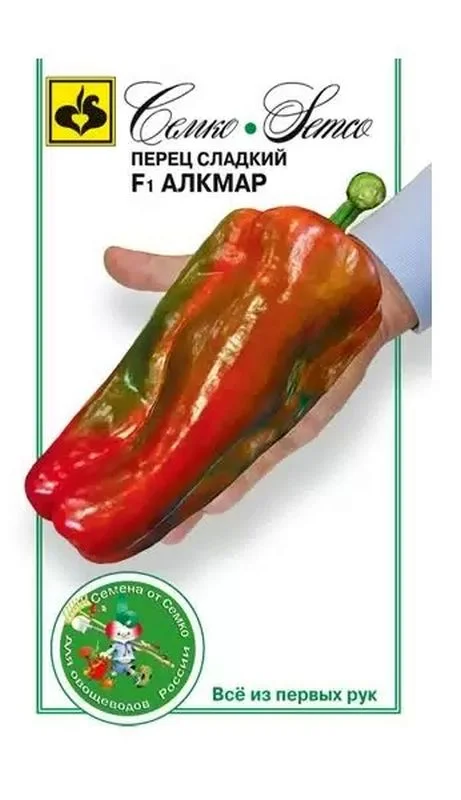 Перец Алкмар F1 - ранний гибрид рекомендуемый для стеклянных и пленочных теплиц с формированием в 2-3 стебля, а также для открытого грунта и пленочных тоннелей с подвязкой к опоре. От всходов до технической спелости 105–110 дней, до биологической спелости 125–130 дней. Растение среднерослое, компактное, индетерминантное, высотой 1,5–2 м. Перцы призмовидной формы, глянцевые, длиной 16–18 см, в диаметре 10 см, в технической спелости темно-зеленые, в биологической – темно-красные, глянцевые, массой 250–300 граммов. Толщина стенки 9–10 мм. Гибрид хорошо адаптируется к различным условиям выращивания, стрессоустойчив, вынослив к высоким температурам. Перец Алкмар F1 устойчив к вирусу табачной мозаики (TMV 0–2). Вкусовые качества отличные, товарность высокая. Используется для потребления в свежем виде. Оптимальный возраст рассады для высадки на постоянное место 50–60 дней, Плотность посадки 2,5–3 раст./м2, схема посадки 70х50 см. Урожайность 10–14 кг/м2.