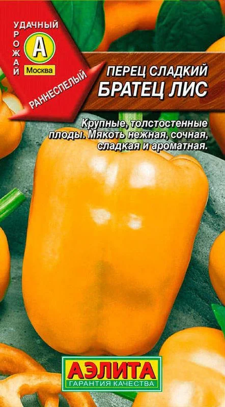 Раннеспелый сорт (90-100 дней от всходов до технической спелости). Выращивают в пленочных укрытиях и в открытом грунте. Растение полураскидистое высотой 100-120 см, одновременно завязывают 12-14 плодов. Плоды удлиненно-кубовидные, от светло-желтого до оранжевого цвета, массой до 120-150 г, толщина стенки до 8-9 мм. Плоды с нежным вкусом и сильным ароматом, в кулинарии их используют для приговления салатов, овощного рагу, фарширования, консервирования, запекания.
