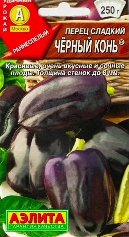 "Раннеспелый сорт (от всходов до технической спелости 95-105 дней). Предназначен для выращивания в открытом грунте и под пленочными укрытиями. Высокоурожайный – на одном растении одновременно завязывается 12-15 плодов. Растения полураскидистые, высокие 100-120 см. Перцы крупные, массой 150-250 г, в технической спелости темно-фиолетовые, в биологической темно-красные. Толщина стенки 9-10 мм. Вкусовые качества отменные, плоды сладкие и сочные. Подходят для потребления в свежем виде, кулинарной переработки и заготовок, а так же для замораживания. Сорт отличается устойчивостью к болезням и неблагоприятным погодным условиям. Урожайность – 6,5-7,5 кг/м2.