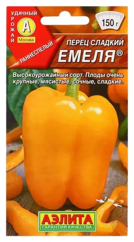 Раннеспелый высокоурожайный сорт (период от массовых всходов до плодоношения 105-110 дней), предназначен для выращивания в открытом и защищенном грунте. Плоды очень крупные, массой до 150 г, в технической спелости – зеленые, в биологической – оранжевые. Толщина стенки плода до 7 мм. Отличаются гармоничным вкусом, предназначены для потребления в свежем виде, всех видов переработки и консервирования.