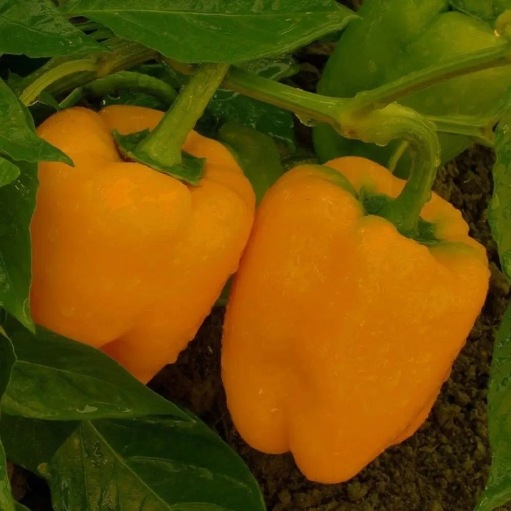 Раннеспелый (105-110 дней) сорт для выращивания в открытом и защищенном грунте. Растение полуштамбовое, формируется в один стебель. Плод кубовидный, гладкий, глянцевый, массой 170-180г, толщина стенки 7-8мм. Окраска плода в биологической спелости темно-желтая. Мякоть сладкая, очень сочная и ароматная. Используют в свежем виде, в домашней кулинарии и для всех видов переработки. Ценность сорта: высокая урожайность, крупноплодность, отличное качество и великолепный вкус плодов. Агротехника. Посев на рассаду в начале марта в увлажненный грунт на глубину 1-1,5 см. Сеянцы пикируют в фазе первых настоящих листьев. Рассаду высаживают в конце мая по схеме 50 на 40. Полив регулярный под корень. Подкормки проводят 4-5 раз за сезон. Хорошо отзывается на регулярные рыхления грунта (до смыкания растений в ряду). При необходимости используют средства защиты растений от болезней и вредителей.Мясистые и крупные плоды!