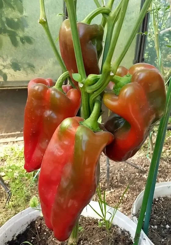 Среднеспелый сорт, показывающий великолепную продуктивность в теплице. Устойчив к перепадам погоды и комплексу заболеваний культуры. Период от появления всходов до созревания урожая 125-135 дней. Растения высотой 45-65 см, кусты компактные и плотные. Перцы крупные, длинные, толстостенные, мясистые. Мякоть сочная и сладкая. Средняя масса плода – 250 г. Продукция отличного качества, широко используется в домашней кулинарии: в свежем виде, для тушения, запекания и замораживания.