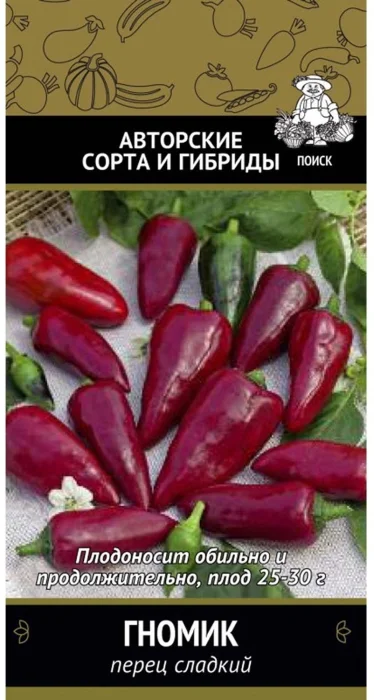 Отличается обильным и продолжительным плодоношением. Среднеспелый сорт для открытого грунта и пленочных теплиц. Период от всходов до начала плодоношения 115-120 дней. Растение высотой 60-70 см. Плод глянцевый, конусовидной формы.  Масса 25-30 г.  Длина плода 8-10 см, толщина стенок 3,5-4,2 мм. Окраска в технической спелости темно-зеленая, в биологической – насыщенно-красная. Универсальное использование.