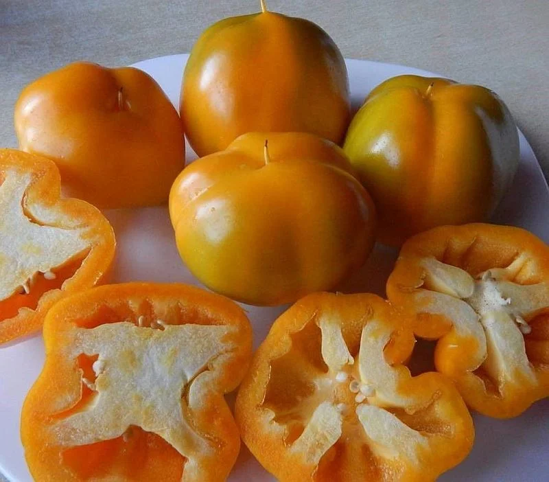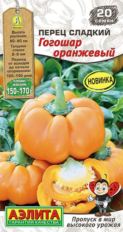 Среднеспелый сорт с отличными вкусовыми качествами и необычными плодами. Период от всходов до начала плодоношения 120-140 дней. Рекомендуется для открытого грунта и пленочных укрытий. Растения полураскидистые, в теплице высотой 80-90 см. Перцы похожи на маленькие тыковки, массой 150-170 г, с очень толстыми сочными стенками 8-9 мм. Степень ребристости плодов может быть различной. Сорт великолепно подходит для употребления в свежем виде, порционной подачи, фарширования и консервирования. Урожайность в теплице 6-8 кг/м2.