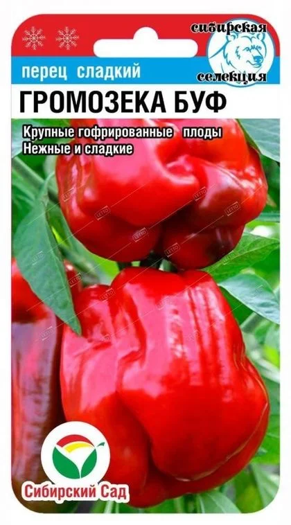 Крупные гофрированные плоды,нежные и сладкие.Оригинальный  крупноплодный  сорт  болгарского перца, выделенный сибирскими селекционерами в особую группу БУФ-перцев, отличающуюся  очень крупными зефирно-воздушными гофрированными  плодами  с   нежной  и вкусной мякотью перекарпия, ранними сроками созревания и небольшим размером куста. Рекомендуется для выращивания в открытом  и защищенном грунте.Растение компактное, высотой до 60см,  с укороченными междоузлиями. Обильно формирует до 10 необычных гофрированных плодов массой 200-250г, сливочно-белых в технической спелости и насыщенно красных - в  биологической.
