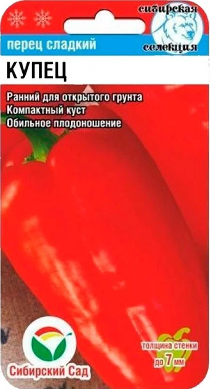 Удивительной урожайность отличается сладкий перец Купец, купить семена которого в нашем каталоге можно по самой низкой цене, с доставкой в любой регион. Главная ценность этой разновидности именно в изобилии плодов – до 7 кг с квадратного метра! Они ровные, красивые, ярко-красные, пирамидальной формы, в меру блестящие и очень ароматные. Имеют средний вес в 130 г и толщину стенок 5 – 7 мм. Размер и форма не имеют выраженных особенностей, но как хорош этот перец в мариновании, готовке, фаршировке! Этому способствует высокое содержание сахаров и сочная мякоть. Куст высокий, до 85 см, полураскидистый. Растение морозоустойчивое, может выращиваться как на огороде, так и в теплице. До наступления устойчивого тепла следует прикрывать рассаду пленкой. Срок созревания ранний, около 100 суток. Высадка - до 4 саженцев на м2.