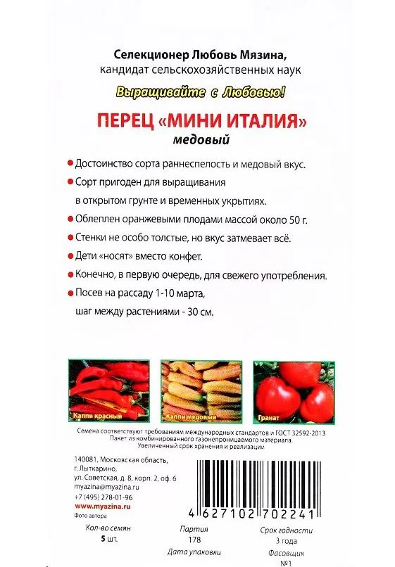 Вид товара: Пакетированные семена