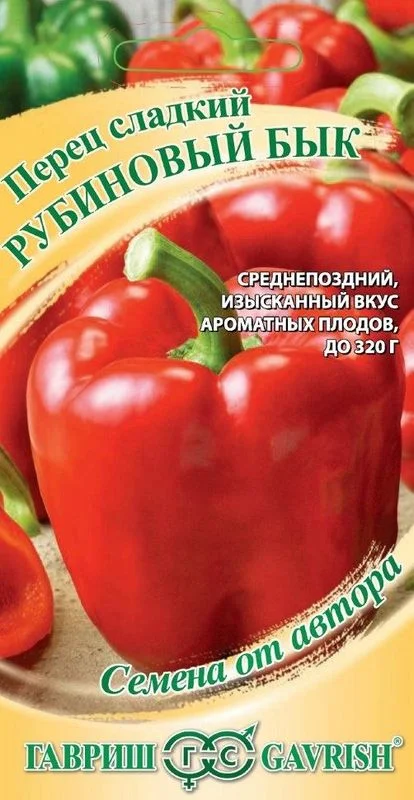 Сладкий перец очень полезная культура. В его состав входит большое количество витамина С, поэтому употребление перца поможет оставаться молодым, здоровым и полным сил. Новый среднепоздний сорт, через 110-125 дней можно будет собирать урожай сладких, сочных перцев. Плод кубовидной формы, 3-4-х камерный, массой 250-320 г, глянцевый, с хрустящей текстурой и толстыми стенками (6-8 мм). Растение смотрится выигрышно по сравнению с другими сортами перцев: сильный, среднерослый куст с яркой изумрудной зеленью, обсыпанный красивыми ароматными плодами, которые при созревании меняют свою окраску от темно-зеленой до ярко-красной. Вкусовые качества отличные. Используют в свежем виде, а также для приготовления горячих блюд и зимних заготовок. Его фаршируют мясом, добавляют в летние салаты, супы, борщ и гарниры. Придаст любому блюду нотки изысканности и украсит своим ярким цветом. Посев на рассаду — в конце февраля. Глубина заделки семян до 1 см. Высадка рассады — в конце мае. Пикировка в фазе 1-2-х настоящих листьев. После высадки у растения удаляют все боковые побеги и листья до первой развилки и подвязывают к опоре. Нельзя высаживать рассаду сладких и острых сортов перца рядом, т.к. происходит переопыление и сладкий перец приобретает горький вкус.