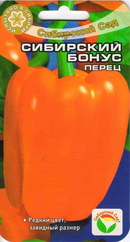 Новинка сибирских селекционеров - крупный, урожайный, вкусный,апельсиново-оранжевый!Крупноплодный,красивый и урожайный сорт сибирской селекции с плодами редкого апельсинового цвета.Растение высотой до 80 см, с сомкнутой формой куста, скрывающего большое количество завязываемых плодов, в технической спелости совпадающих по цвету с темно-зеленой окраской листьев.Созревая, апельсиново-оранжевые плоды чудесно преображают растение, освещая густую зелень яркими, солнечными лучами.На кусте формируется до 15 качественно-стандартных, крупных, кубических плодов, весом до 300 г,с толщиной стенки до 10 мм.Толстостенные плоды, не содержащие горького вещества, обладают выраженным перечным ароматом, сладким вкусом и нежной консистенцией, способны хорошо дозариваться, практически не теряя упругости.Сорт рекомендован для выращивания в теплицах и открытом грунте.Пригоден для употребления в свежем виде и любых видов переработки. Урожайность - до 3 кг с растения.Для увеличения урожайности рекомендуется соблюдать режим