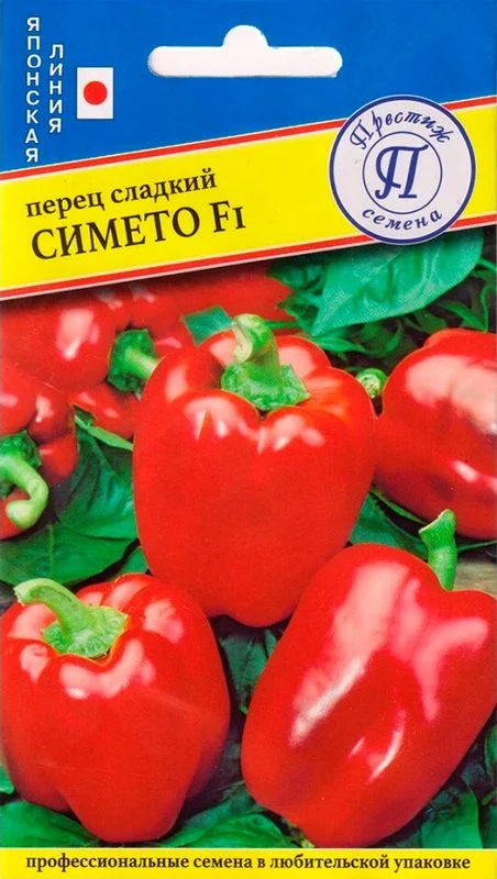 Перец сладкий Симето F1 — среднеранний гибрид со сроком вызревания плодов 110 дней. Одинаково хорошо развивается как под пленочным укрытием, так и в открытом грунте. Показывает повышенную устойчивость к фузариозу и вирусу бактериальной пятнистости. Плоды в стадии вызревания — зеленые, к моменту сбора урожая — темно-красные. Форма удлиненно-кубовидная, структура 3−4-камерная. Толщина стенок 8−10 мм. Средний вес плода 350−400 граммов, диаметр 9−10 см, длина 12−14 см. Кожица гладкая, глянцевая. Вкус сочный, хрусткий, сахаристый.