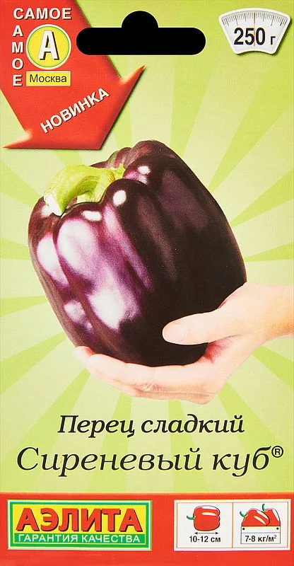 Перец сладкий Сиреневый куб® порадует высоким урожаем. Рекомендуется для выращивания в открытом и защищенном грунте. Сорт раннего срока созревания, от всходов до первого сбора плодов 115-120 дней. Растение полуштамбовое, раскидистое, в теплице высотой 60-70 см. Плоды массой 190-250 г, с толстыми сочными стенками (7-9 мм). В технической спелости – фиолетовые, в биологической – темно-красные. Использование в кулинарии безгранично. Урожайность в теплице – 7-8 кг/м2.