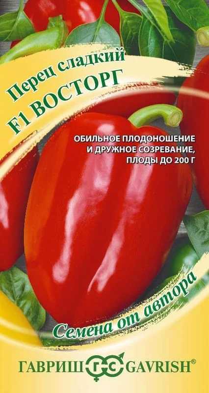 Раннеспелый гибрид. Растение полураскидистое, компактное, высотой 60-70 см. Плоды укороченно-конусовидные, тупоконечные, 3-гнедные, массой 160-200 г, длиной до 10-13 см, диаметром 7-8 см, толщиной стенки 6-8 мм. Незрелые – светло-зеленые, зрелые – красные, с сочной, сладкой мякотью отличного вкуса. Плоды расположены под листвой, что предотвращает солнечные ожоги. Гибрид предназначен для употребления в свежем виде, домашней кулинарии, консервирования, переработки и заморозки. Посев на рассаду - в конце февраля. Пикировка в фазе семядолей. Высадка рассады в грунт в конце мая. Формировка: удаление всех боковых побегов и листьев до первой развилки. Урожайность 5,9-7,3 кг/м2.