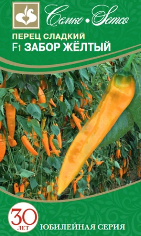 Перец Забор Желтый F1 - ранний гибрид для стеклянных и пленочных теплиц, а также для открытого грунта. От всходов до технической спелости 95-105 дней, до биологической 110-120 дней. Растение индетерминантное, высоты свыше 2 метров достигает на 125-130 день от всходов, обычно формируется в 3-4 стебля. Если дать растению развиваться самостоятельно, бывает до 6-7 стеблей. Плоды узкотреугольные, характерные для сортотипа Капия, длиной 16-18 см, в диаметре 4 см, массой 100-120 г, плотные, светло-зелёные в технической спелости, жёлтые в биологической. Толщина стенки 4-5 мм.Вкусовые качества плодов отличные. Устойчив к вирусу табачной мозаики (TMV 0-2) и вирусу бронзовости (TSWV). Устойчив к температурным стрессам. Рекомендуется для выращивания во всех типах теплиц и в открытом грунте (южные регионы) с подвязкой к опоре. Плотность посадки 2-2,5 раст./м2. Урожайность свыше 10 кг/м2. Более прохладные температуры удлиняют срок вегетации, но увеличивают урожайность.