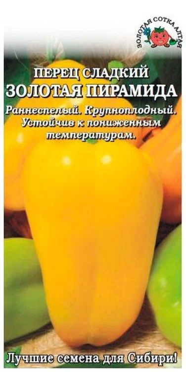 Раннеспелый сорт селекции Западно-Сибирской овощной опытной станции. Растение средней высоты. Плоды конусовидные, глянцевые, при созревании ярко-желтые, отличного вкуса и аромата. Масса плода 89-109 г, отдельные плоды до 250 г, толщина стенки 6-8 мм. Урожайность в открыгом грунте 3,1 кг/кв.м, под пленочными укрытиями - 6,7 кг/кв.м. Сорт устойчив к пониженным температурам.Можно выращивать после моркови, капусты, свеклы. бобовых (кроме фасоли) и тыквенных культур. Перец нельзя размешать вместе с огурцом. Выращивается рассадным способом. Для получения рассады семена высевают в феврале в посевные ящики с почвенной смесью. Ящики, накрытые пленкой (стеклом), помещают в теплое место. Оптимальная температура для прорастания семян 23-25°С.
