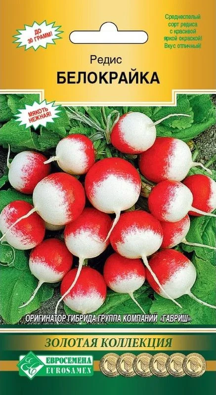 «Белокрайка»- среднеспелый сорт редиса с красивой яркой окраской.