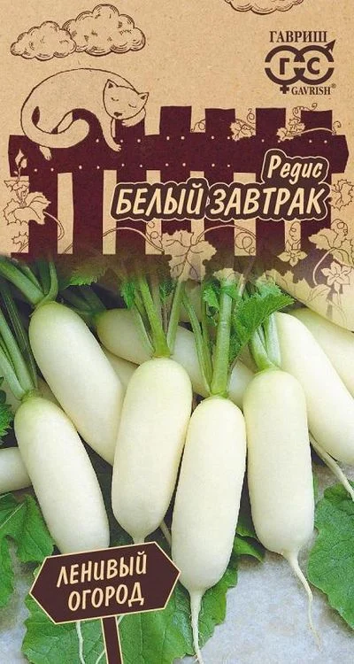 Раннеспелый (17-22 дня от всходов до технической спелости) сорт для открытого грунта. Розетка листьев полупрямостоячая. Корнеплод удлиненно-цилиндрической формы, белый, массой 15-18 г. Мякоть белоснежная, сочная, плотная, долго не дрябнет. Используется для получения пучковой продукции. Вкус отличный, неострый, понравится детям. Посев в грунт производится в конце апреля-начале мая на глубину 1 см по схеме 5-7x15 см. Повторный посев проводят в июле-августе. Редис неприхотлив в выращивании, но дружный урожай крупных корнеплодов получится на легких, структурированных, хорошо удобренных почвах.