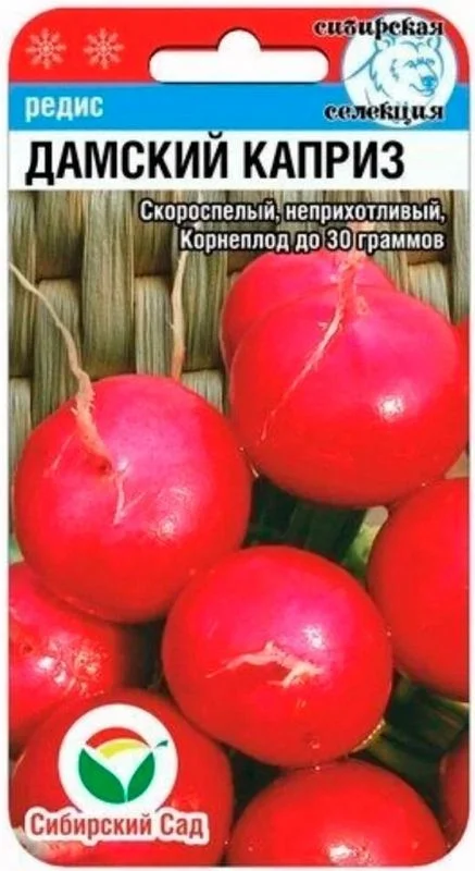 Раннеспелый (23-25 дней) сорт. Корнеплоды крупные, округлые, малиново-красные с белым кончиком массой 25-30 г.