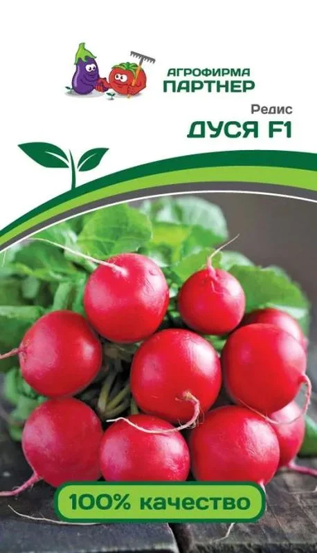 Гибрид раннеспелый. От всходов до потребления 23-25 дней. Корнеплоды очень выровненные по форме, массой около 30 г, необыкновенного вкуса без горечи, с нежным ароматом, сладковатые. Мякоть снежно-белого цвета, маслянистая, искрящаяся, нежного слабоострого вкуса, приятно хрустящая. Листовая розетка полу раскидистая, упругая, очень маленькая; окраска черешков имеет сильно антоциановый цвет. Корнеплоды имеют округлую форму, аккуратный тонкий корешок, кончик которого белый, а сам корнеплод окрашен в малиново-розовый цвет. В любом возрасте редис не имеет пустот и не дряблеет, долго сохраняет свой товарный вид. Плотность посадки 200-220 растений/м2. Урожайность 5-6 кг/м2.