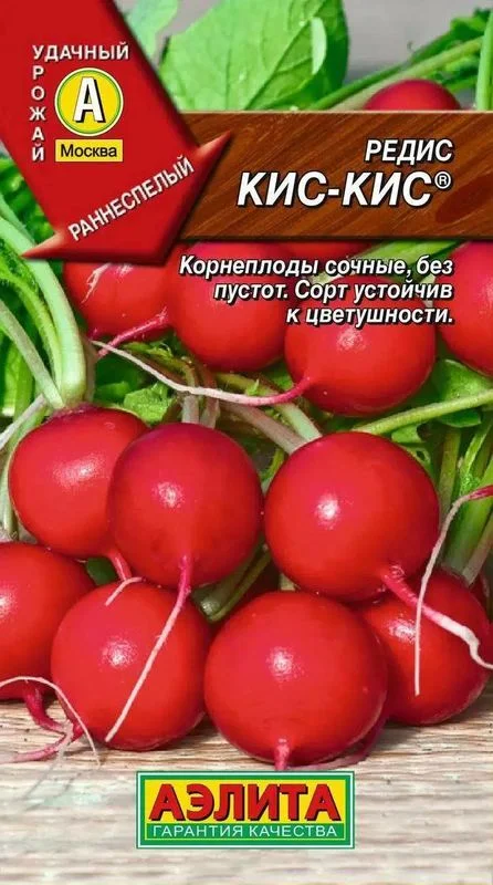 Урожайный, раннеспелый сорт (24-27 дней от всходов до технической спелости). Корнеплод красный, круглый. Мякоть плотная, хрустящая, слабо-острая и сочная. Устойчив к дряблению. Масса корнеплода 18-20 г. Вкусовые качества отличные. Урожайность до 2,5 кг/м2. Ценность сорта: раннее и быстрое формирование корнеплодов, хорошие вкусовые качества, устойчивость к образованию пустот. Используется для получения пучковой продукции. Посев в открытый грунт проводят на глубину 2 см. После появления первого настоящего листа всходы прореживают. Чтобы получать урожай в течение продолжительного  времени,  семена  высевают  несколько  раз за сезон с интервалом 15-20 дней. Растениям необходимы своевременные поливы, прополки, рыхления.      20.IV-15.VII   10x5 см   солн.место  V-IX