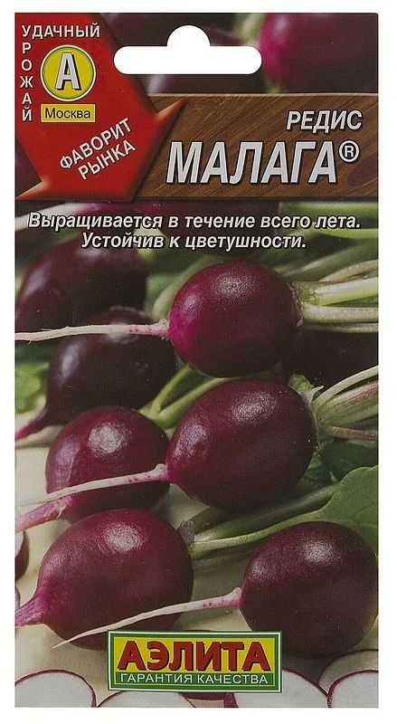 Среднеранний сорт с оригинальной окраской корнеплодов. Формирует урожай за 20-25 дней от всходов. Удивит высокими вкусовыми качествами и составит достойную конкуренцию любому престижному сорту. Корнеплоды массой 15-20 г, с тонким осевым корешком. Долго не дряблеют. Мякоть плотная, хрустящая, сочная, полуострая. Сорт не склонен к преждевременному стрелкованию, поэтому может успешно выращиваться в течение всего сезона. Урожайность 0,9-2,2 кг/м 2 . Корнеплоды осеннего урожая прекрасно хранятся 1-2 месяца.