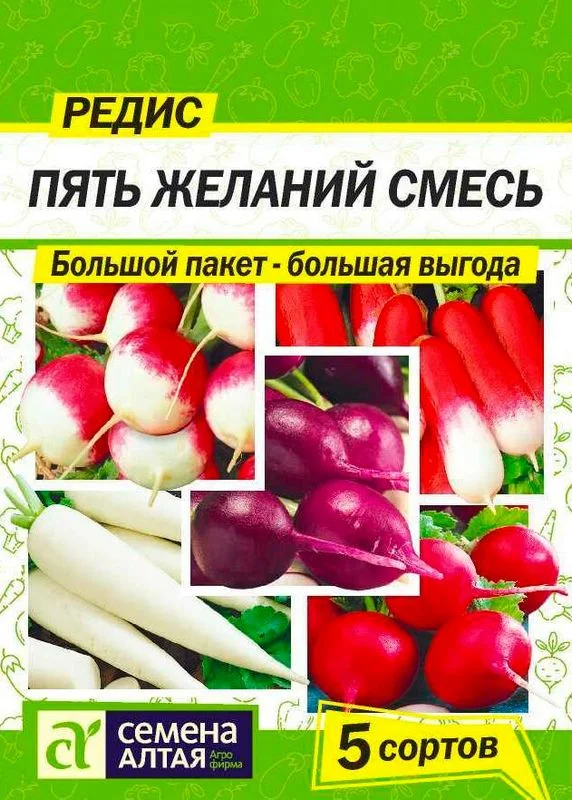 Яркая смесь для получения ранней продукции удовлетворит желания всей семьи! Высокоурожайные сорта, устойчивые к стрелкованию и дряблению. Радуга цвета и вкуса. Мякоть нежная, сочная, хрустящая, очень вкусная. Под выращивание редиса отводят рыхлые, плодородные почвы. На бедных, тяжелых и кислых почвах хороший урожай высокого качества не вырастает. Редис требователен к свету, в тени даёт длинную ботву и маленький корнеплод. Для получения масимального урожая редиса необходиоме строгое соблюдение севооборота - не сажать его после крестоцветных. Возможны смешанные посевы редиса с морковью и луком. Посев производят с начала апреля до середины августа. Семена всходят при температуре 16-18°C на 5-6 день.