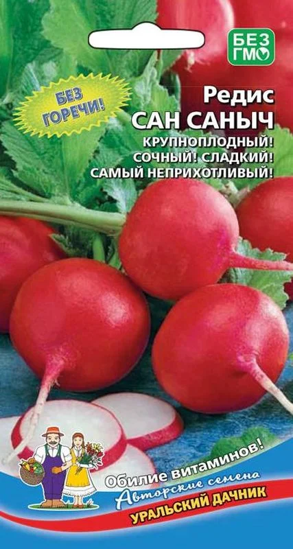 Раннеспелый, всесезонный, крупноплодный гибрид для выращивания в открытом и защищенном грунте. Корнеплоды округлые, гладкие, выровненные, ярко-красного цвета, массой до 30 г. Мякоть белая, сочная, сладкая, без горечи.
