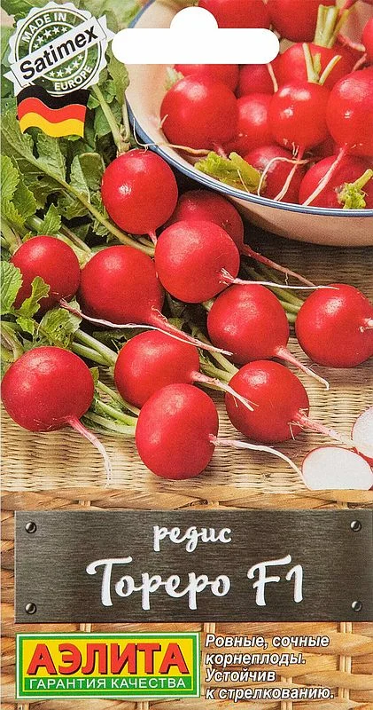 Один из лучших скороспелых гибридов от немецкой компании Satimex для получения дружного урожая свежего, сочного редиса. Подходит для пленочных укрытий и открытого грунта. Первые корнеплоды готовы к дегустации спустя 14-16 дней после появления всходов. Растения компактные, с прямостоячей розеткой листьев, не склонные к раннему стрелкованию. Редис округлый, среднего размера, массой более 20 г.Вкус сладковато-острый, мякоть – плотная, без пустот и долго не дряблеет. Урожайность гибрида – около 2-2,5 кг/м2.Чтобы получать урожай в непрерывном режиме, семена высевают несколько раз за сезон с интервалом 15-20 дней.Редис можно выращивать в качестве уплотняющей культуры на посадках капусты, огурцов, томатов и как повторную культуру после уборки ранних овощей.