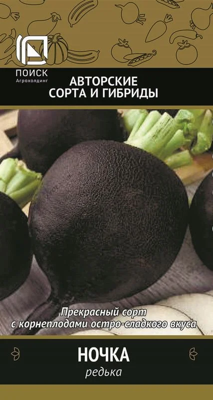 Описание растения: Период от всходов до уборки урожая 70-95 дней. Корнеплод черный, округлый, длиной 8-12 см, диаметром 9-13 см. Поверхность слегка бороздчатая. Мякоть белая, плотная, сочная, остро-сладкого вкуса. Масса 230-350 г. В почву погружен полностью, легко выдергивается. Розетка полураскидистая.