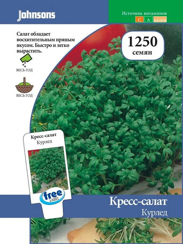 Прекрасное растение для получения витаминной зелени в домашних условиях весь год. Раннеспелый высокоурожайный сорт. От всходов до начала хозяйственной годности 15-17 дней. Техническая спелость наступает через 30 дней. Вкус острый, горчичный. Используют для приготовления салатов, гарниров, супов. Зелень содержит большое количество минеральных солей, йод, витамины В, С, Р.