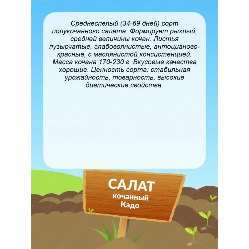Среднеспелый (50-69 дней) сорт для открытого грунта. Кочан средней величины, рыхлый. Листья зеленые у основания и красно-бордовые на кончиках листьев, пузырчатые, слабоволнистые, с маслянистой консистенцией. Масса одного растения 170-230 г. Вкусовые качества хорошие. Ценность сорта: стабильная урожайность, товарность, высокие диетические свойства. Рекомендуется для употребления в свежем виде, использования в различных салатах.