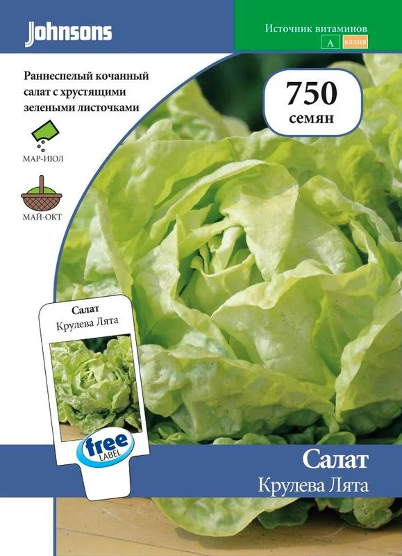 Раннеспелый сорт с плотными кочанчиками, которые могут достигать массы до 500 г. Листья хрустящие, пузырчатые, волнистые по краю. Сорт устойчив у к цветушности и заболеваниям. Посев в открытый грунт с марта по июль, в августе для молодых всходов. В подготовленный грунт сейте редко с интервалом 15-25 см. Регулярно поливайте. Всходы появляются на 7-14 день. Чтобы непрерывно собирать урожай, подсеивайте каждые 2-3 недели. Когда всходы станут большими, проредите их, нельзя допускать загущения посевов. Накануне прореживания посевы поливают. Урожай с мая по октябрь. Молодые листья срывайте по мере необходимости с каждого растения равномерно. Они заново вырастут еще на 4 срезки. Целые кочаны срывают с мая по октябрь. Для получения более ранних всходов посадите семена в мини-парники в феврале, высадите в открытый грунт в апреле по схеме 25х25 см.
