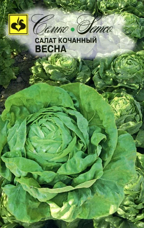 Салат Весна - среднеспелый сорт кочанного салата для открытого грунта. От всходов до технической спелости 65-75 дней. Кочан среднего размера, округлый, со светло-зелёными листьями средней плотности. Масса одного растения 200-280 г. Вкусовые и товарные качества отличные. Салат Весна устойчив к цветушности, мозаике салатной и ложной мучнистой росе (BL 1-25). Сорт пригоден для кратковременного хранения после уборки. Рекомендуется для выращивания в открытом грунте в течение всего сезона, в том числе прямым посевом. Оптимальная схема посева 30х25 см. Густота посадки 12-13 растений на м2.Урожайность 2,5-3,6 кг/м2.