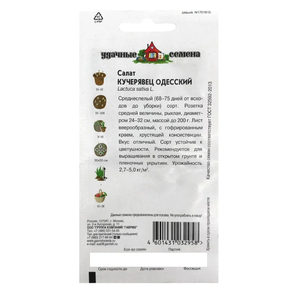 Салат Кучерявец Одесский Серия Удачные семена