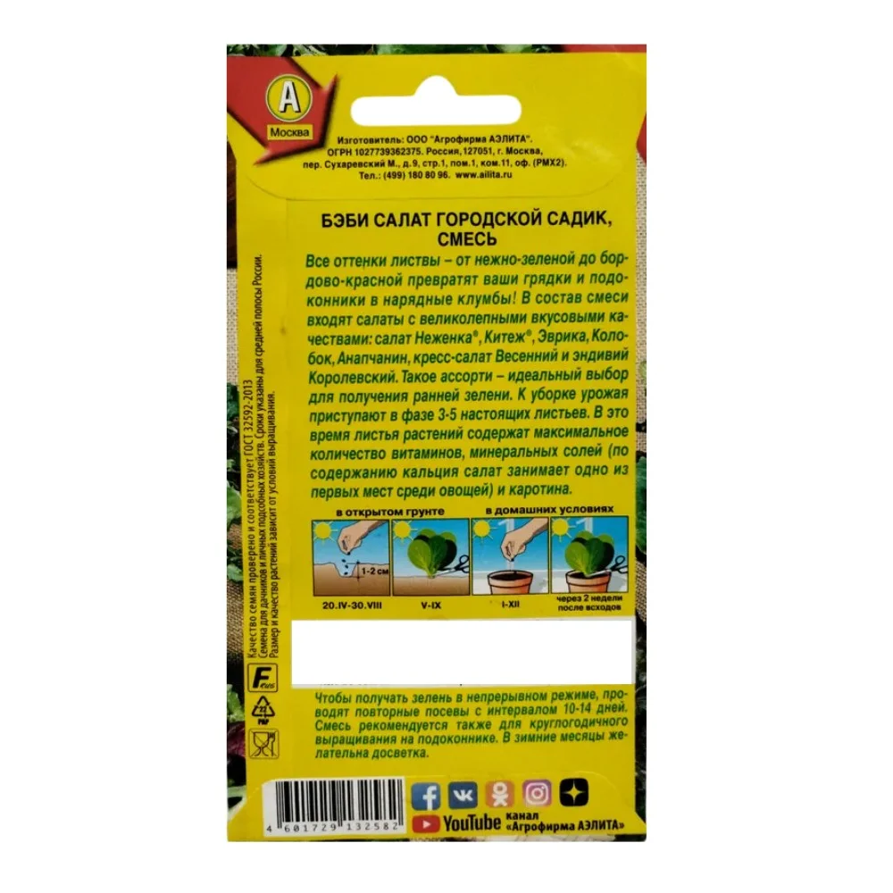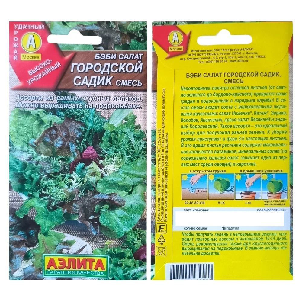 Все оттенки листвы – от нежно-зеленой до бордово-красной превратят ваши грядки и подоконники в нарядные клумбы! В состав смеси входят салаты с великолепными вкусовыми качествами: салат Неженка, Китеж, Эврика, Колобок, Анапчанин, кресс-салат Весенний и эндивий Королевский. Такое ассорти – идеальный выбор для получения ранней зелени. К уборке урожая приступают в фазе 3-5 настоящих листьев. В это время листья растений содержат максимальное количество витаминов, минеральных солей (по содержанию кальция салат занимает одно из первых мест среди овощей) и каротина. Чтобы получать зелень в непрерывном режиме, проводят повторные посевы с интервалом 10-14 дней. Смесь рекомендуется также для круглогодичного выращивания на подоконнике. В зимние месяцы желательна досветка.