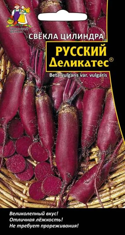 Среднеспелый, высокоурожайный сорт.Корнеплоды цилиндрические, выровненные, темно-красные, массой 200-300 г. Мякоть очень сочная, плотная, без колец, нежная, сладкая. Ценность сорта:высокая урожайность, выравненность корнеплодов, одноростковость, отличная лежкость в период зимнего хранения. Рекомендуется для всех видов кулинарной переработки, приготовления витаминных соков, консервирования и замораживания.Сорта и гибриды серии Русский деликатес®–это то, что не устает восхищать и радовать не только самих садоводов, но и членов их семей (в первую очередь, детей, которым сложно привить любовь к овощам на столе). Все овощи серии Русский деликатес® на порядок слаще и лакомее за счет того, что имеют богатый,насыщенный вкус, нежную сахаристую структуру и яркий, неповторимый аромат и совсем не похожи на те современные «пластмассовые» овощи, которые лежат на прилавках современных супермаркетов. Мы хотим,чтобы на ваших грядках росли лучшие овощи!