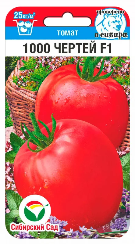 Раннеспелый (95-100 дней) продуктивный гибрид с крупными плодами розового цвета. «Тысяча чертей, такого не бывает»! , - первое впечатление о гибриде. Гибрид ценится за крупноплодность (до 600г),   высокую урожайность, крепкий иммунитет к сложным погодным   условиям. Устойчив к растрескиванию, хорошо транспортируется, отлично подходит для рынка ранней овощной продукции. Выращивается в защищенном грунте во всех регионах РФ, в южных регионах возможно выращивание в открытом грунте в коловой культуре.