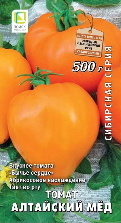 Абрикосовая окраска, вкуснее «Бычьего сердца». Среднеспелый сорт для выращивания в пленочных теплицах. Период от всходов до начала созревания 105-110 дней. Плод сердцевидной формы, слегка ребристый, абрикосово-оранжевой окраски массой 350-500 г (до 800 г), вкус отличный. Для приготовления соков и свежего потребления.