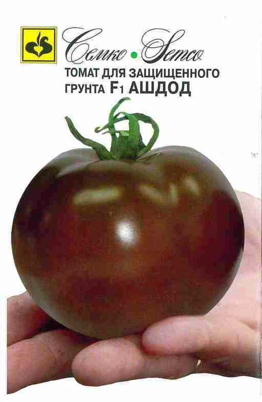 Томат Ашдод F1 - ранний, индетерминантный гибрид для защищенного и открытого грунта с плодами темно-коричневой окраски. От всходов до созревания 85–90 дней. Растение с укороченными междоузлиями, хорошо облиственное. Первое соцветие закладывается над 7–9 листом, последующие через 3 листа. Помидоры округлые, массой 120–150 г, темно-коричневые, гладкие, плотные. Мякоть плода на разрезе темно-вишневой окраски, с повышенным содержанием ликопина. При высоких температурах в летний период плоды приобретают красно-коричневую окраску. Хорошая завязываемость при высоких температурах. Отличные вкусовые качества. Товарность и транспортабельность хорошие. Томат Ашдод F1 устойчив к вирусу томатной мозаики (TоMV), вертициллезу (Va, Vd). Для выращивания в пленочных теплицах или в открытом грунте с подвязкой к опоре. Густота посадки 2,5 раст./м2, схема посадки 70х40 см. Урожайность свыше 18 кг/м2.