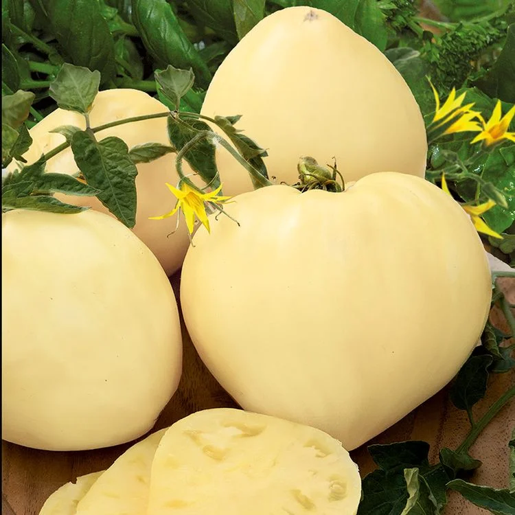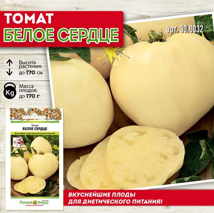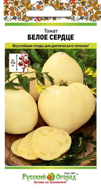 Редкий среднеспелый индетерминантный сорт для выращивания в теплицах. Урожай созревает за 110-115 дней. Требуется подвязывание и пасынкование. Плоды средней массой 150-250 г (максимум – 400 г), сердцевидные, желто-кремовые, сладкие и сочные. Растения плодоносят до поздней осени, высоко устойчивы к фитофторе и мучнистой росе. Плоды необычной окраски подходят для включения в рацион питания аллергиков и детей.
