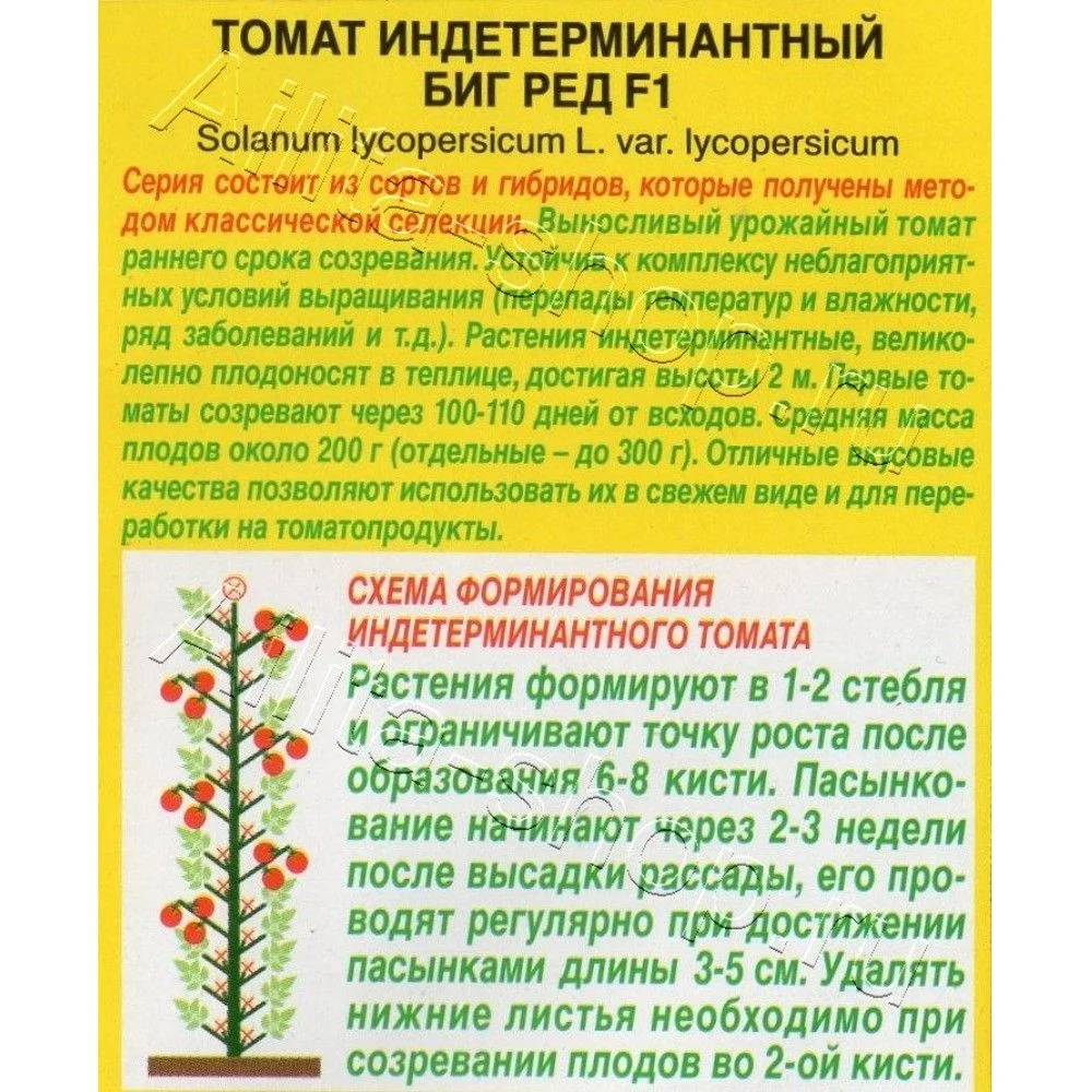 Растения формируют в 1-2 стебля и ограничивают точку роста после образования 6-8 кисти. Пасынкование начинают через 2-3 недели после высадки рассады, его проводят регулярно при достижении пасынками длины 3-5 см. Удалять нижние листья необходимо при созревании плодов во 2-ой кисти.
