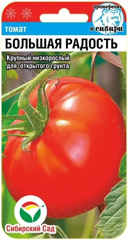 Новинка!!! Крупный низкорослый для открытого грунта. Сибирский крупноплодный сорт для открытого грунта и  пленочных укрытий,  среднеспелый. Растение  детерминантное  высотой до 90 см. Кисть простая, с 3-4   крупными, мясистыми   красными плодами, массой 250-400 грамм.  Мякоть с достаточным содержанием сахаров и кислот, сочная, по-сибирски вкусная .