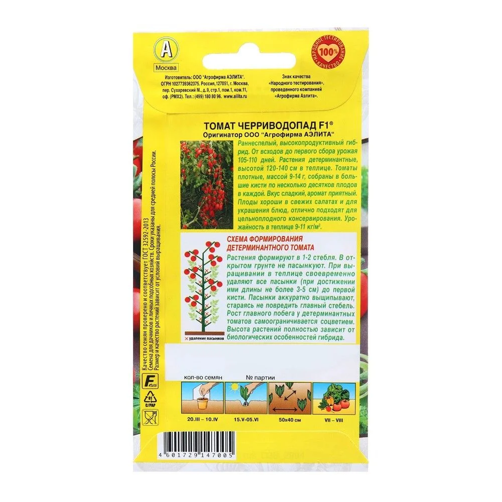 Раннеспелый высокопродуктивный гибрид. От всходов до первого сбора урожая 105-110 дней. Растения детерминантные, высотой 120-140 см. Первая кисть закладывается над 6-7 листом, последующие через 1-2 листа. Томаты плотные, массой 9-14 г, собраны в большие кисти по несколько десятков плодов в каждой. Вкус сладкий, аромат приятный. Плоды хороши в свежих салатах и для украшения блюд, отлично подходят для цельноплодного консервирования. Гибрид устойчив к вершинной и корневой гнили, ВТМ и мучнистой росе, легко переносит пониженные температуры и недостаток влаги. Растения формируют в 2-4 стебля и удаляют все пасынки (побеги, образующиеся в пазухах между стеблем и листьями). Их начинают удалять через 2-3 недели после высадки рассады и в дальнейшем проводят еженедельно, при достижении ими длины 3-5 см. Пасынки аккуратно выщипывают, стараясь не повредить главный стебель. Рост главного побега у детерминантных томатов самоограничивается соцветием. Высота растений полностью зависит от биологических особенностей гибрида.